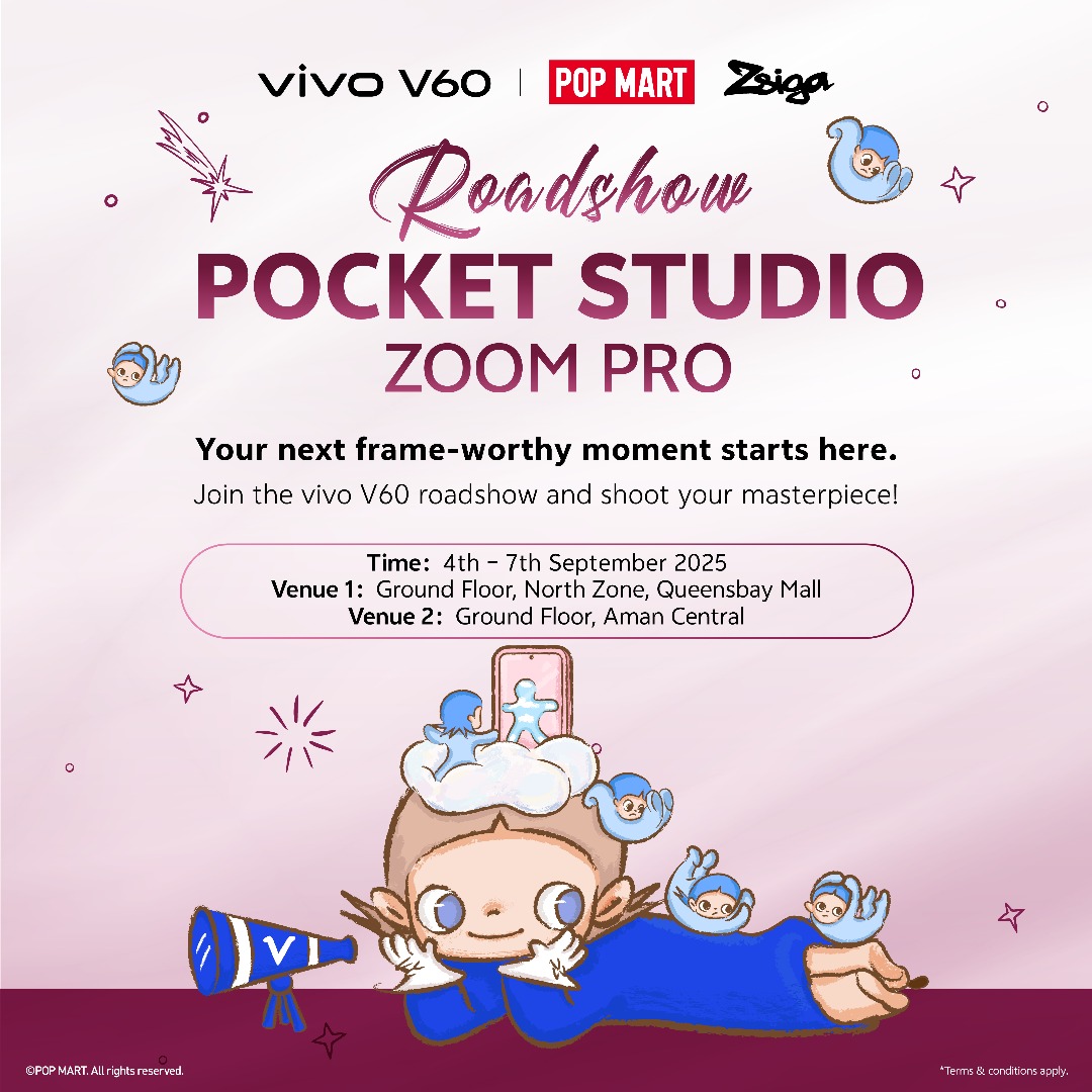 The ZEISS Portrait Master vivo V60 is making its way to town and now is your chance to experience it up close. Starting from just RM1,999, this all new ZEISS Portrait flagship brings pro level photography to your hands with a 50MP ZEISS Super Telephoto camera, 10x ZEISS Telephoto Zoom Portrait with up to 100x zoom, and ZEISS Multifocal Portrait featuring the iconic 85mm and 100mm focal lengths. Capture incredible depth, lifelike ZEISS colours and crystal clear detail, all presented in the elegant Berry Purple finish.