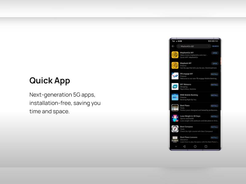 Ia turut dilengkapi dengan Quick Apps yang menyediakan pengalaman mengakses sesuatu aplikasi tanpa memuat turun. Ia sekaligus membantu pengguna menjimatkan storan peranti mereka.