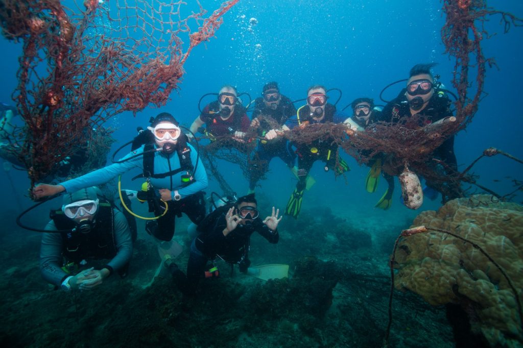 Sukarelawan dari Nestlé dan pasukan Ocean Heroes UMT turut menyelam di perairan Pulau Bidong bagi menyingkirkan pukat hantu yang membahayakan terumbu karang dan ekosistem marin. Penyelidik UMT melaksanakan audit sisa untuk mengumpul data penting berkaitan sisa laut, yang akan digunakan dalam kajian jangka panjang demi perlindungan biodiversiti marin.