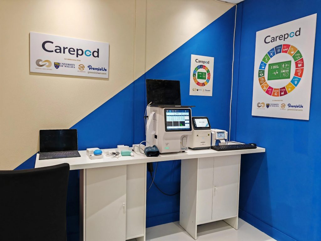 CarePod’s digital infrastructure is strengthened by QuantumNexis Sdn. Bhd., ensuring scalable, enterprise-grade cloud services and compliance with international standards. The system also collaborates with University of Malaya to enable evidence-based outcomes, NCD risk profiling, and infectious disease analytics for continuous improvement.