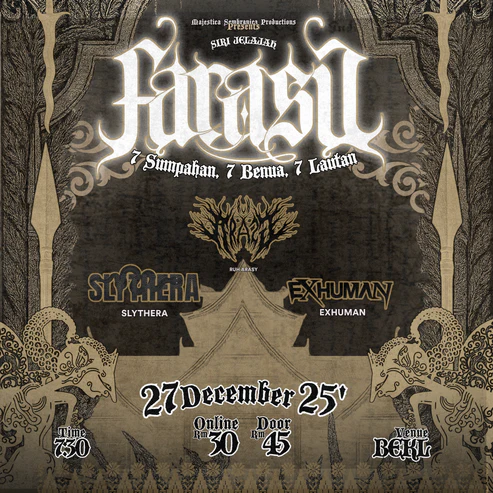 Majestica Sembranica Productions dengan bangga mempersembahkan showcase istimewa FARASU bertajuk “Siri Jelajah FARASU: 7 Sumpahan, 7 Benua, 7 Lautan” yang bakal berlangsung pada 27 Disember 2025 di BE KL, Bandar Tasik Permaisuri. Persembahan ini menjadi detik penting buat FARASU, band Metal tersohor yang telah bertapak selama 23 tahun dalam landskap muzik Metal Malaysia, menandakan kebangkitan semula mereka di pentas persembahan secara langsung. Showcase ini dijangka menghimpunkan peminat Metal dari pelbagai latar untuk merasai pengalaman muzik yang sarat dengan emosi, kekuatan dan identiti Nusantara Melodic Death Metal dengan konsep unik “DeathMetalSwagger”.
