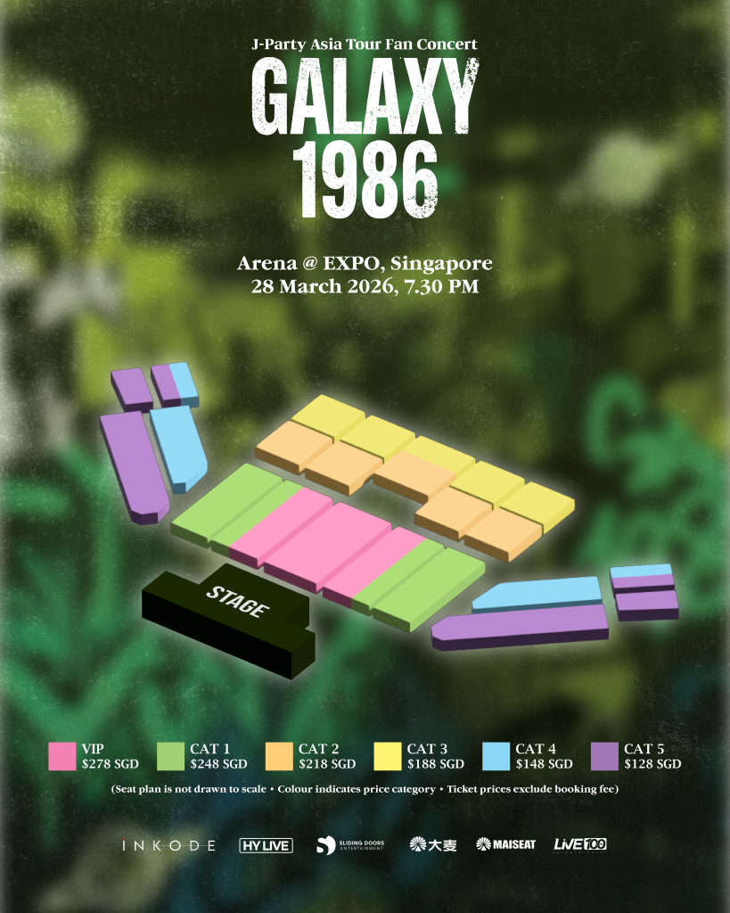 Tickets for the 2026 Kim Jae Joong J-Party Asia Tour Fan Concert “GALAXY 1986” in Singapore will be available across several categories, with prices ranging from SGD 128 to SGD 278, excluding booking fees. The presale will begin on 21 January 2026 at 12.00 PM through DAMAI and MAISEAT, followed by general sales starting on 22 January 2026 at 10.00 AM via all SISTIC channels. For the latest updates and announcements, fans are encouraged to follow @slidingdoorsentertainment.asia on Instagram.