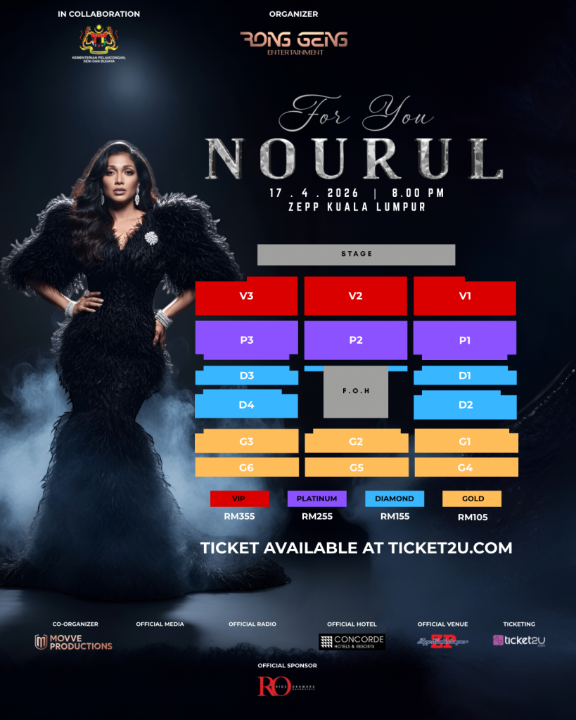 Rong Geng Entertainment dengan penuh bangga mengumumkan penganjuran Konsert “For You: Nourul”, sebuah persembahan eksklusif yang diraikan khas untuk menghargai legasi, ketekunan, dan pencapaian seni penyanyi berbakat, Nourul Depp, sepanjang lebih 30 tahun beliau mewarnai industri muzik Malaysia. Konsert yang dinanti-nantikan ini bakal berlangsung pada 17 April 2026 di Zepp Kuala Lumpur, bermula pada jam 8.00 malam. Menampilkan produksi pentas moden, ritma kontemporari, susunan muzik segar, serta elemen visual premium, konsert ini dijangka menghimpunkan lebih 1,500 penonton daripada pelbagai latar belakang termasuk peminat setia, rakan media, penggiat industri kreatif, influencer, dan komuniti seni tempatan.