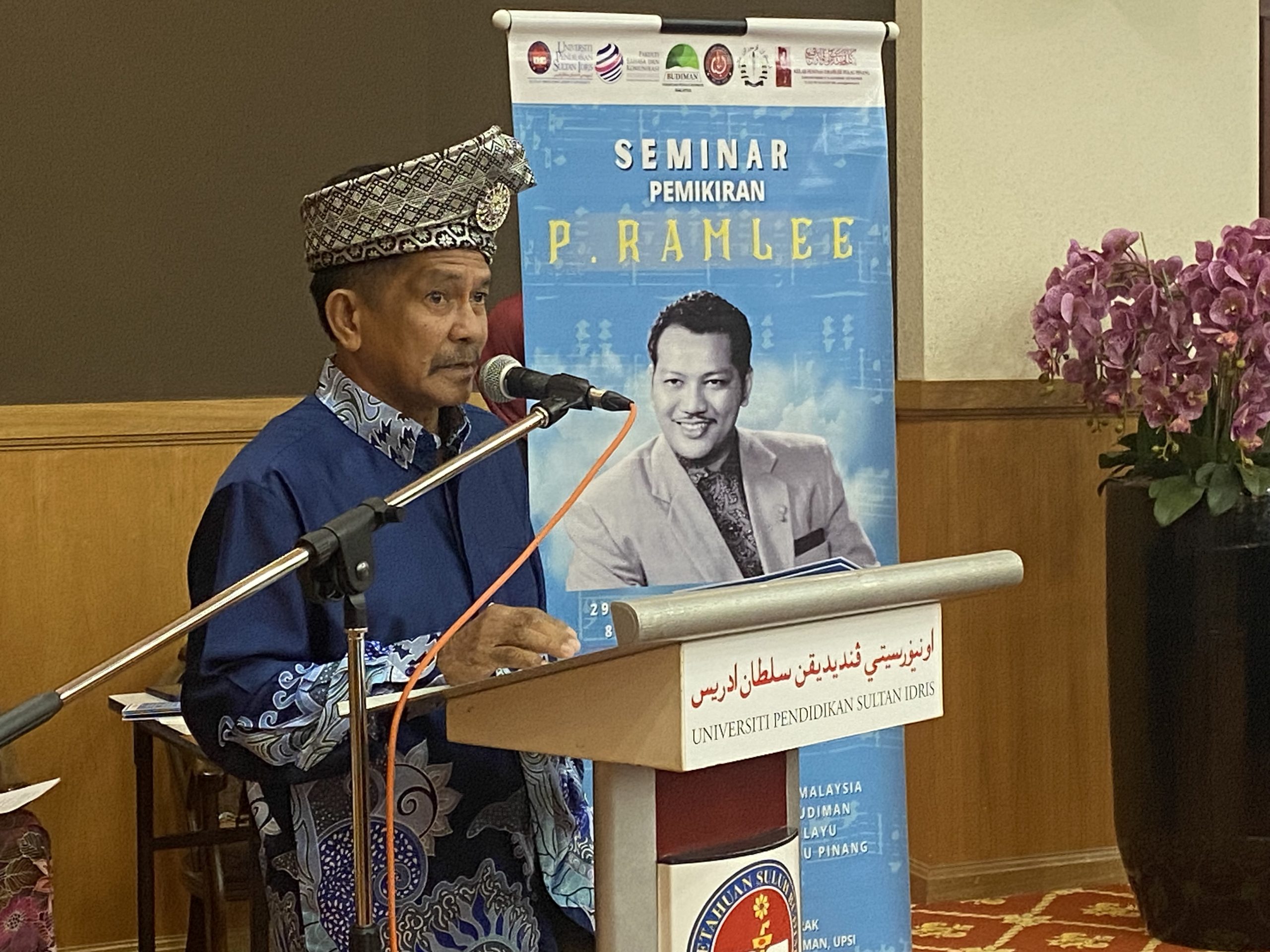 Tan Sri Mohd Yussof berucap pada Seminar Pemikiran P. Ramlee di Dewan Konvensyen E-Learning, Kampus Sultan Abdul Jalil Shah, UPSI